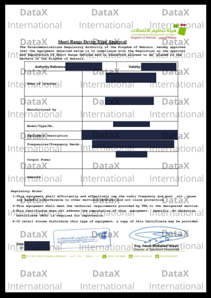 Do not hesitate to reach out on info@dataxinternational.com with your questions and your Bahrain Type Approval needs for a free of charge detailed assessment and approval quotation.